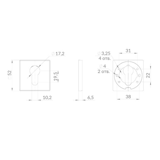 Накладка под цилиндр Punto ET.K.EST.Q52 квадратная в цвет ручки