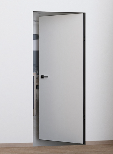 Скрытая дверь обратного открывания Инвизибл под покраску в скрытом коробе. Грунтованное покрытие для дальнейшего декорирования краской. Допустимо использование в помещениях с повышенной влажностью. Безопасно для здоровья и окружающей среды. Можно красить или клеить обои. Устанавливается вровень со стеной.