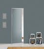 Каркасная дверь Hausdoors под покраску на лицевой части, зеркало с другой стороны, открывание внутрь. Полотна изготавливаются с фабричной фрезеровкой под замок 196 мм и петли AGB Eclipse 2.2. Со стороны зеркала предусмотрено одно или два отверстия - под ручку и фиксатор/цилиндр. Рекомендуется к установке ручка на круглой розетке диаметром не менее 52 мм.