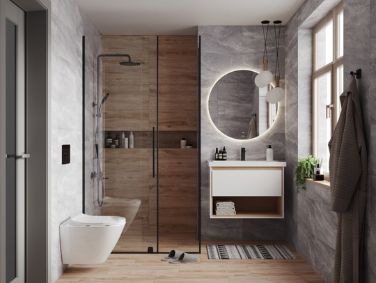 При покупке товаров из любых 3-х категорий: двери, напольные покрытия, керамическая плитка или керамогранит, сантехника, доставка по городу до подъезда бесплатно.