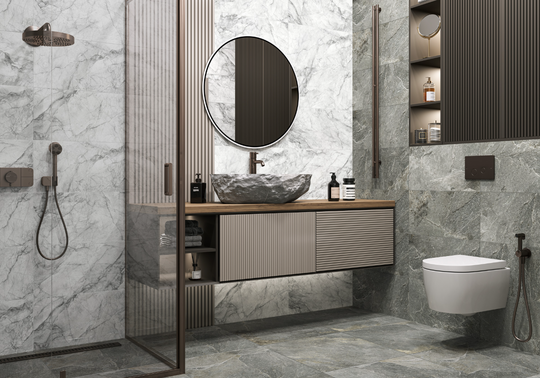 При покупке товаров из любых 3-х категорий: двери, напольные покрытия, керамическая плитка или керамогранит, сантехника, доставка по городу до подъезда бесплатно.