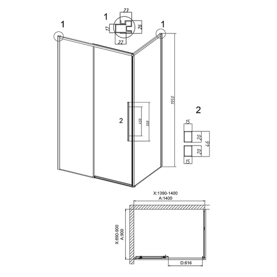 - Одно неподвижное стекло, одна раздвижная дверь;