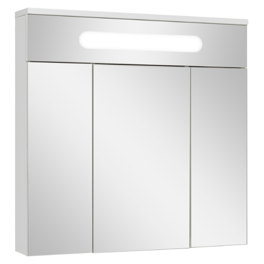 Зеркало-шкаф Olivia 80 оснащен тремя распашными зеркальными дверцами. Блок розетка/выключатель расположен внутри шкафа. Полки под хранение обеспечивают порядок внутри. Петли на дверцах со встроенным доводчиком.