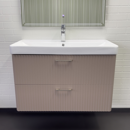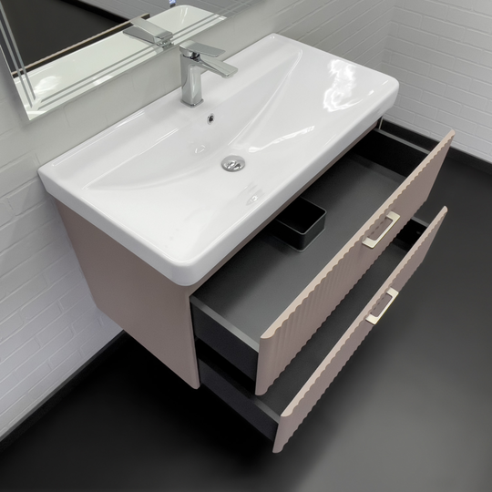 Тумба Comforty Ангара 90П оснащена двумя выдвижными ящиками с системой плавного закрывания. Фрезеровка фасадов выполнена в дорической форме. Внутренние детали тумбы выполнены из влагостойкого ЛДСП. Металлические ручки скобы под естественный хват цвета "жемчужный никель". Тумба подготовлена для подключения водоснабжения сзади и снизу.
