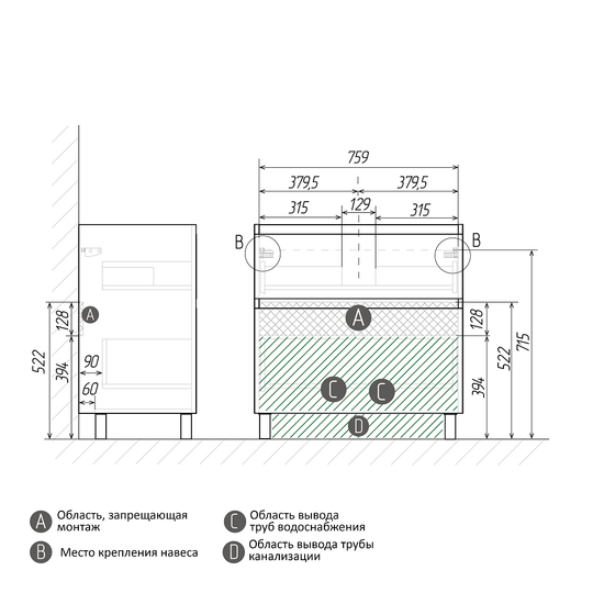| Тумба с раковиной Grossman Меркадо 80 графит матовая напольная |