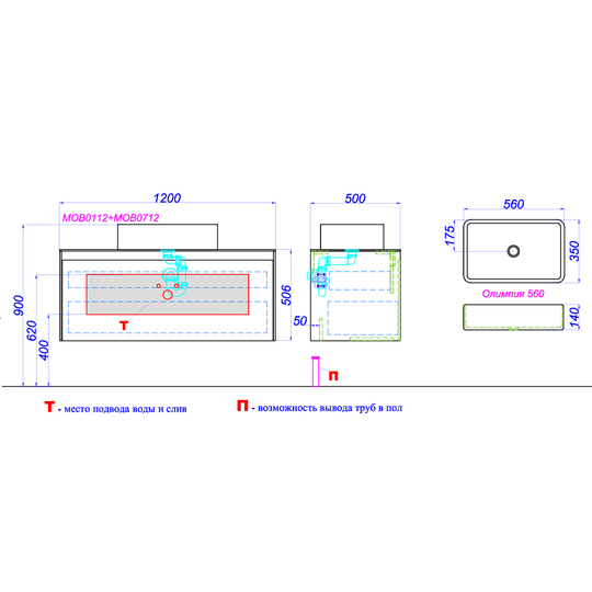 Корпус MOB0112W/Фасад MOB0712BS