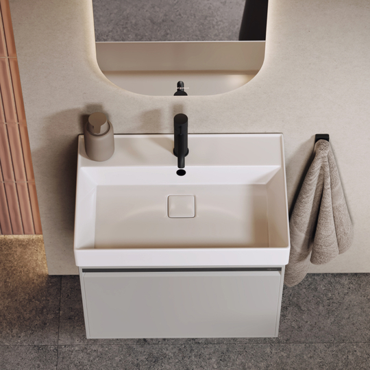 Тумба Pure 81 оснащена одним ящиком с плавным скольжением и мягким закрыванием.