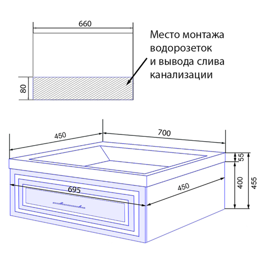 - Материал: фасад и бока МДФ, ящики ЛДСП;