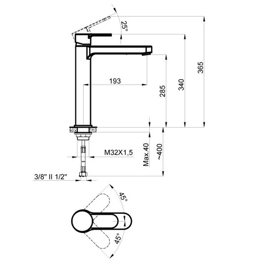 - Вращение излива: